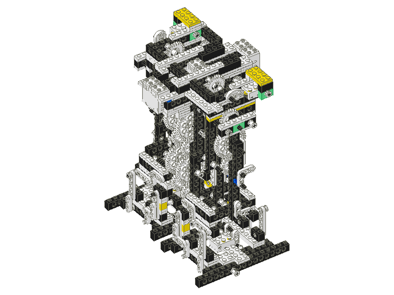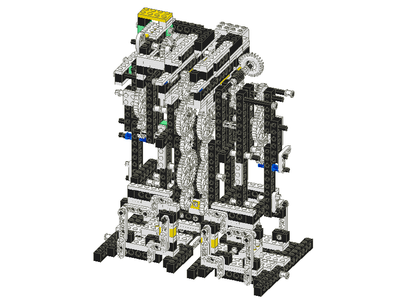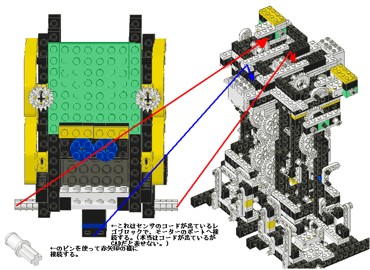 脚部と腰部のギアの連結の部分をくりぬき図で表します。これと実画像を元に装着してみてください。