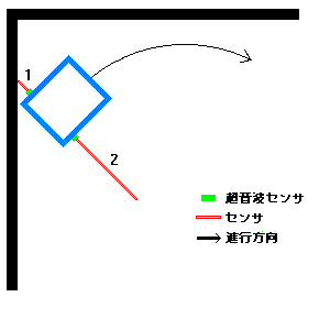 距離の長い方向(図では2)を推測して図のようにその方向へ曲がりながら進む。