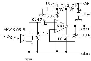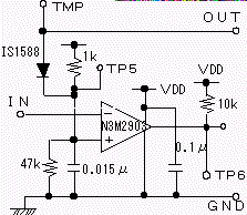 39KΩの抵抗によってヒステリングスをつくっている。10μFのコンデンサはリップノイズをバイパスさせ、電流インピーダンスを下げている。