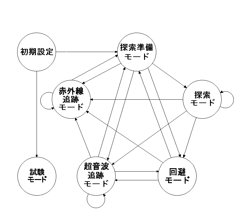 - 相手の動きを見てタッチセンサ・赤外線センサに反応があるまで、追跡するモード。