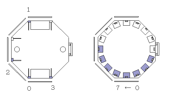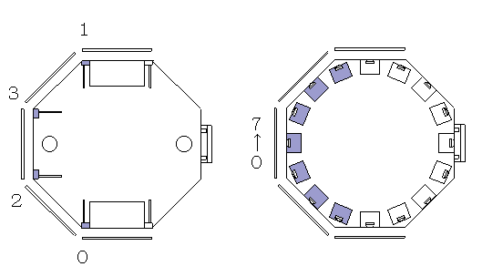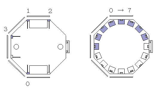 - 赤外線センサの反応が他の赤外線センサにそれた場合、前の三つで捕らえられるよう旋回、iiに戻る。
