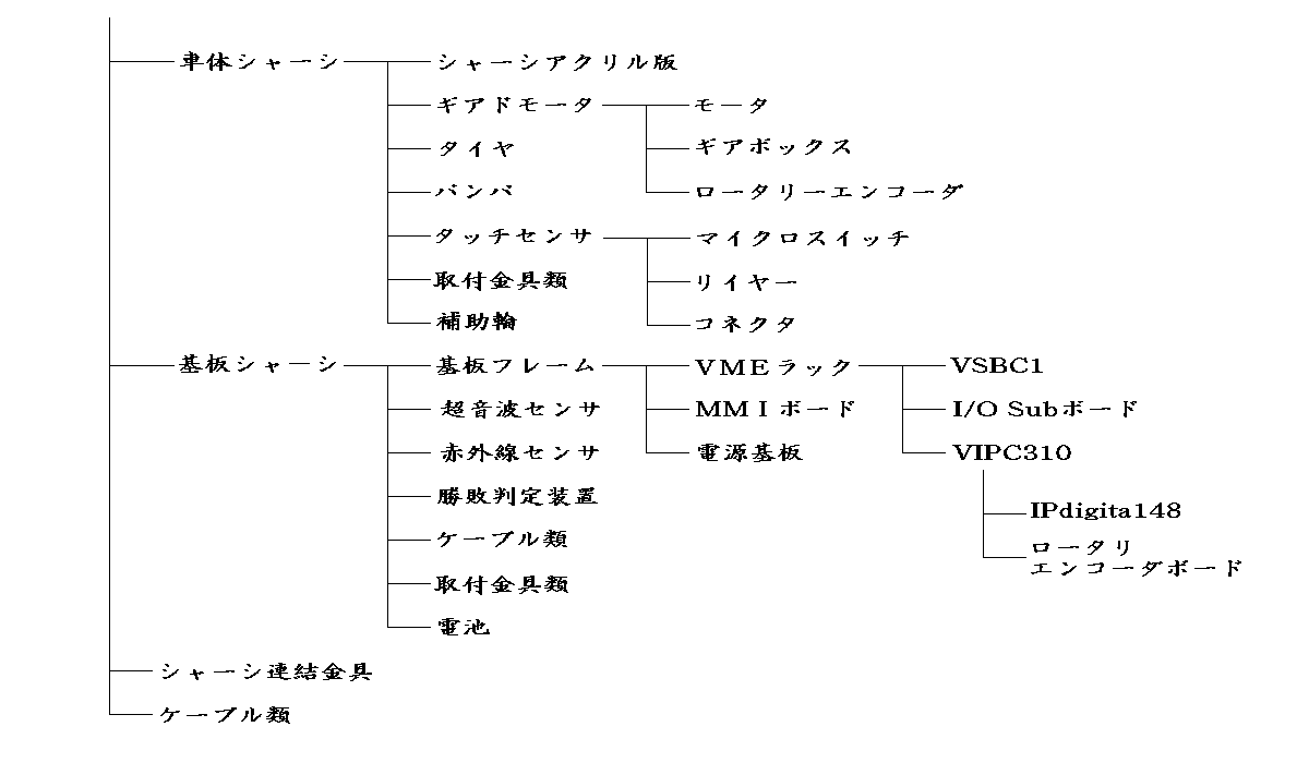 車輪シャーシ駆動系の部品が、基板シャーシには主に基板類が取り付けられる。