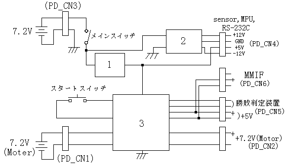 電源としては、ラジコン用の7.2Vの充電用電池を用いる。