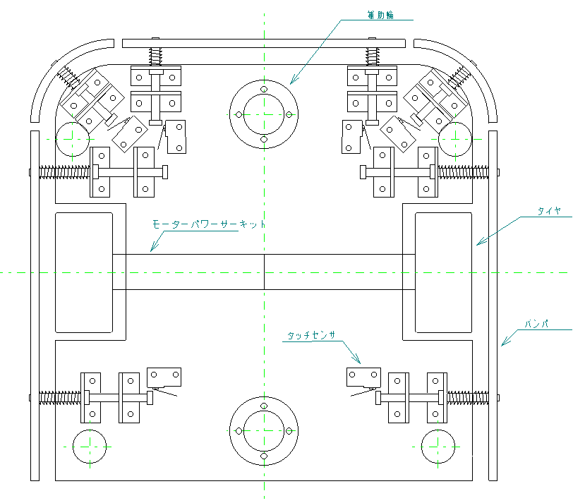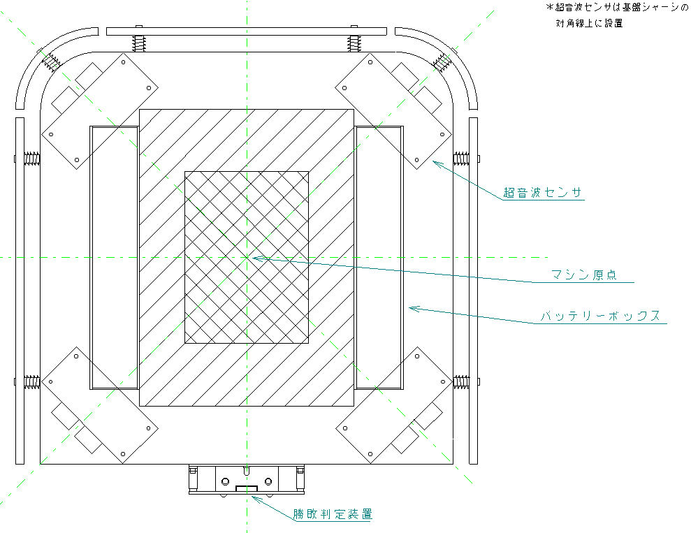 なお、超音波センサはシャーシの対角線上に超音波ボードの中心がきます。