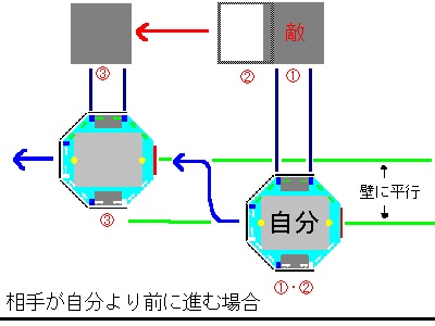 - 赤外線センサで相手の後ろを捕らえた場合のモード。