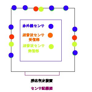 以下に、赤外線センサおよび超音波センサの取り付け位置を示す。