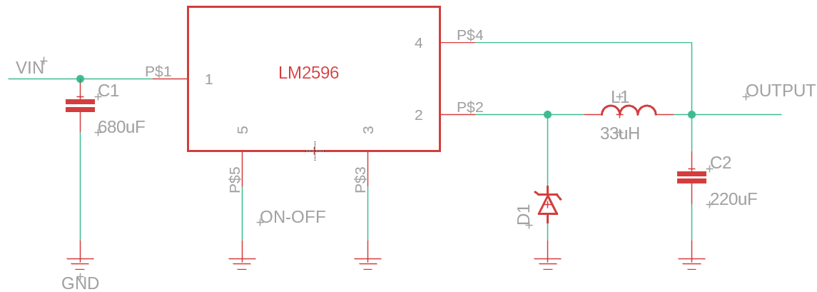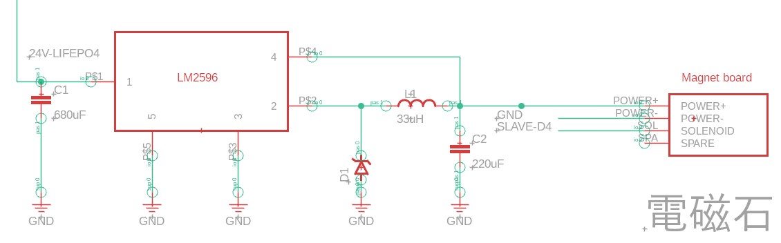 24V主電源バッテリより、バッテリモジュールを介して電圧を分岐し、システム各部へ電力を供給する。 LM2596Sの内部構成を図3に示す。