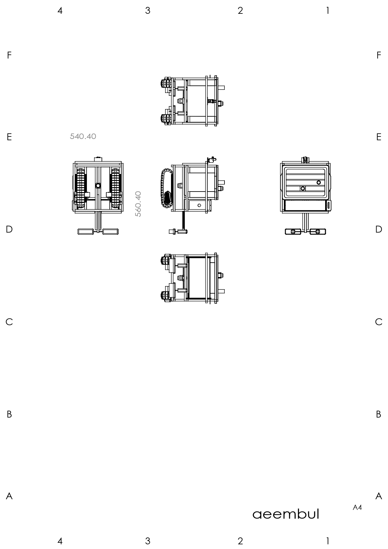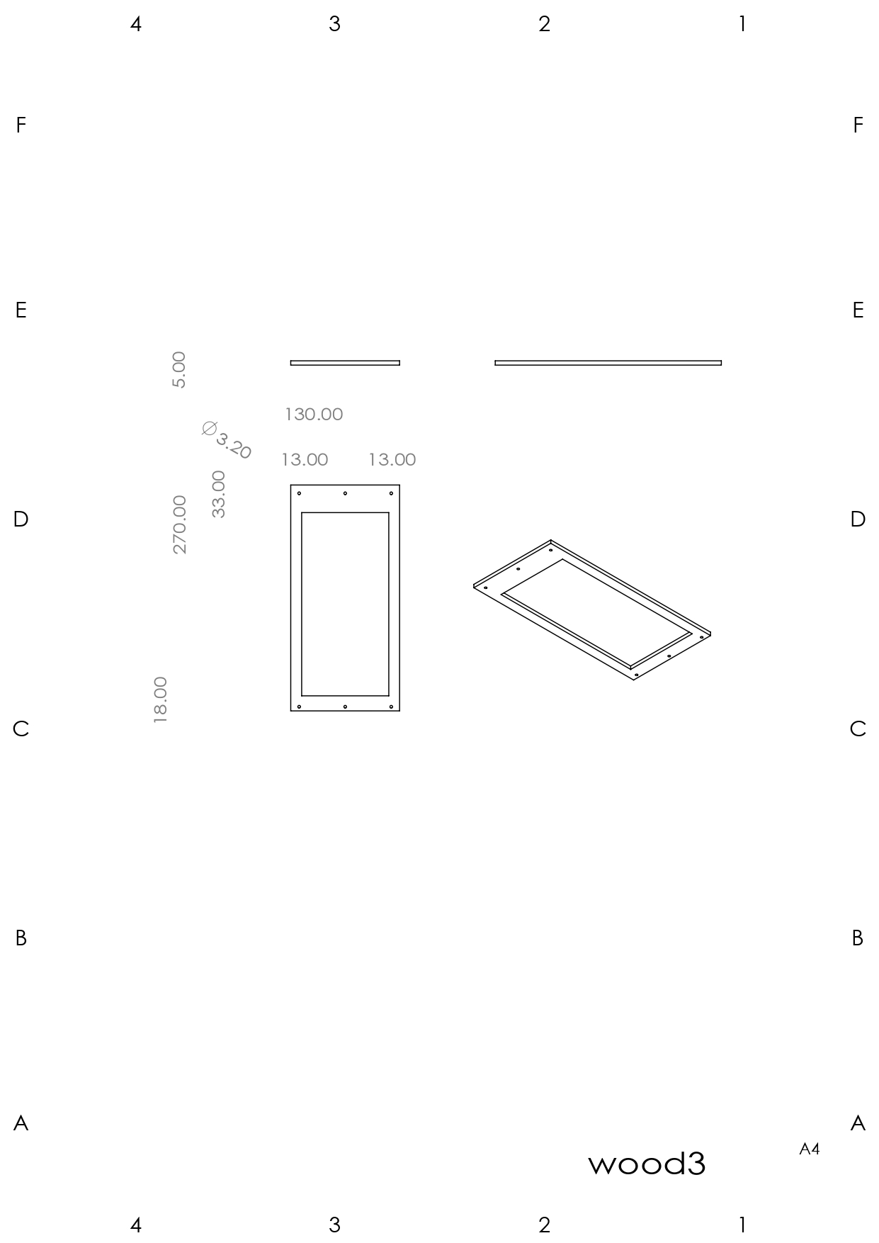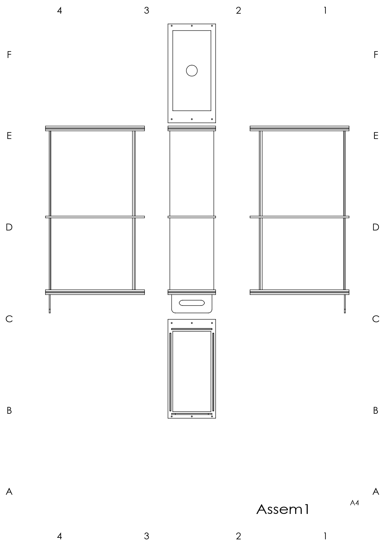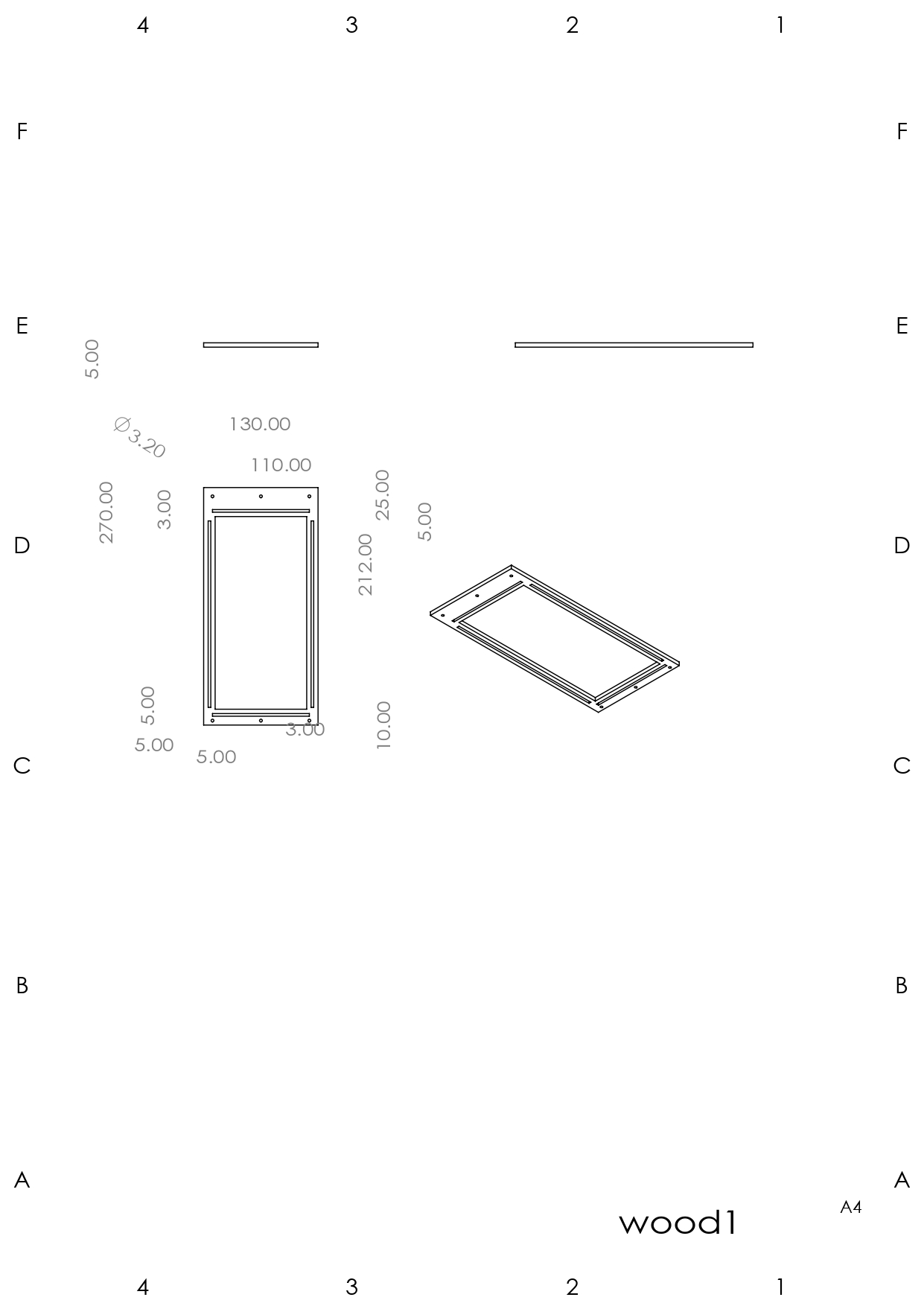 回路部分およびPCを保護するケースの全体図面を図5に示す。また、ケースを構成するアクリル部品として、上部パネル・下部パネル・長辺側面パネル・短辺側面パネルをそれぞれ図6、図7、図8、図9に示す。さらに、中間仕切り、内側仕切り、外側仕切りについては、それぞれ図10、図11、図12に示す。